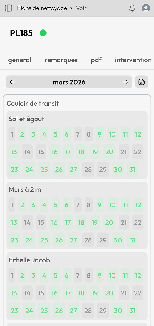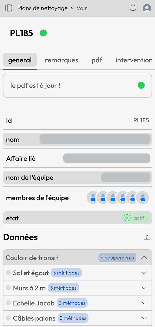 Suivez le nettoyage de vos équipements avec précision. Consultez les images, les remarques et voyez les employés qui ont travaillé dessus.